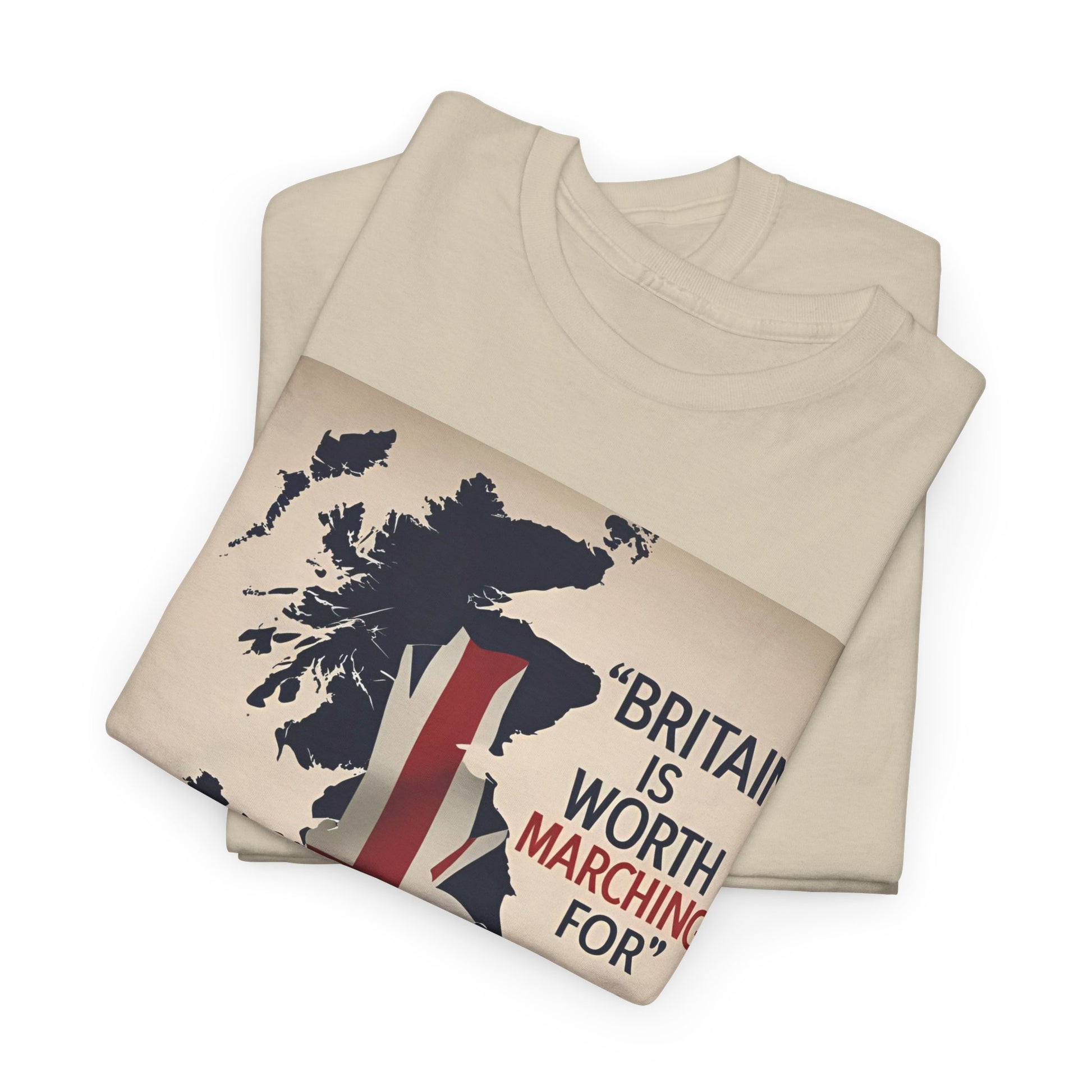 Show your pride with the Britain Is Worth Marching For T-shirt. Featuring a bold map of the UK with the Union Jack at its heart, this shirt is a powerful reminder of heritage, resilience, and unity. Whether you’re out at an event, a casual day out, or simply making a statement, this tee delivers lasting comfort and timeless style.