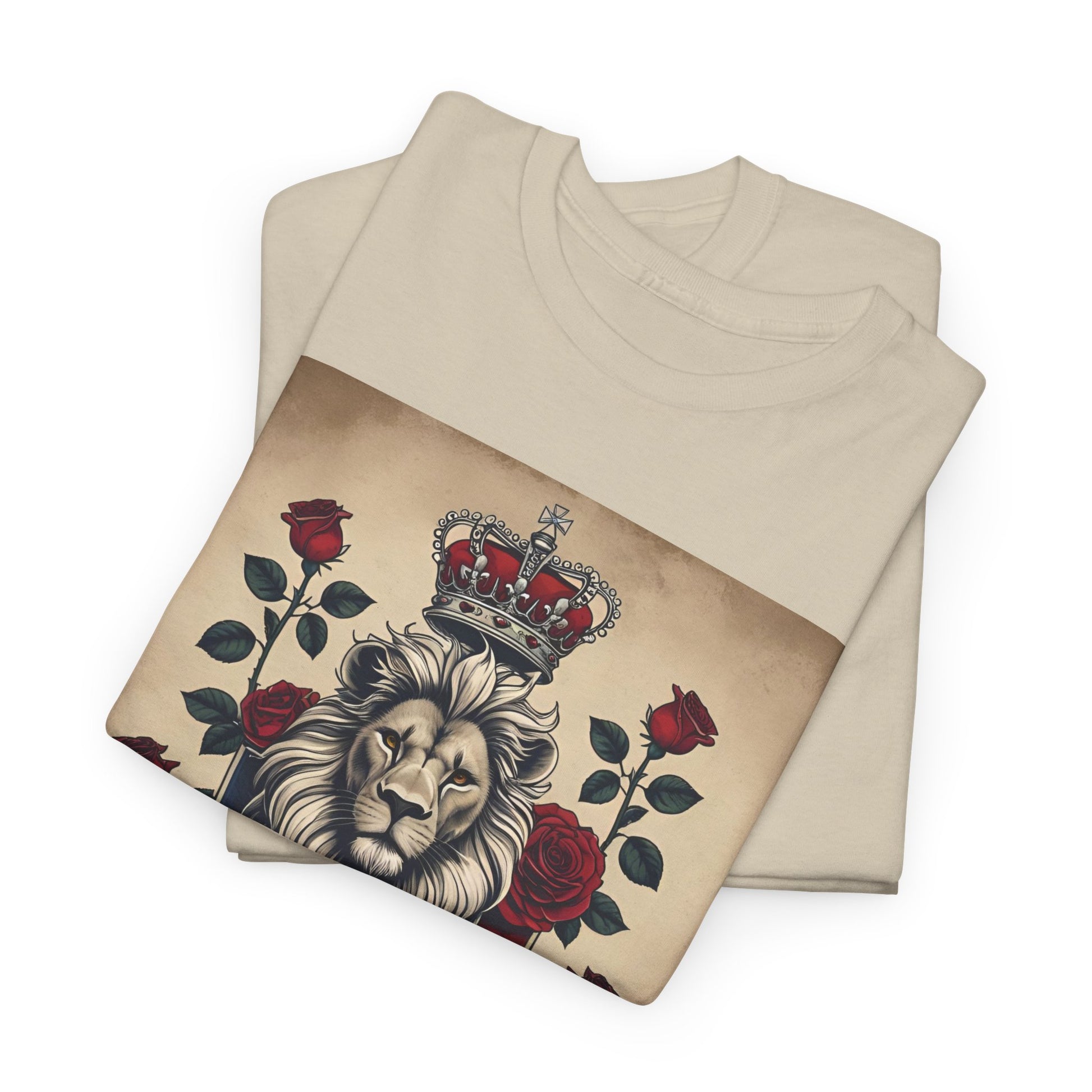 Bold heritage design – lion crest, roses & crown for a powerful look
