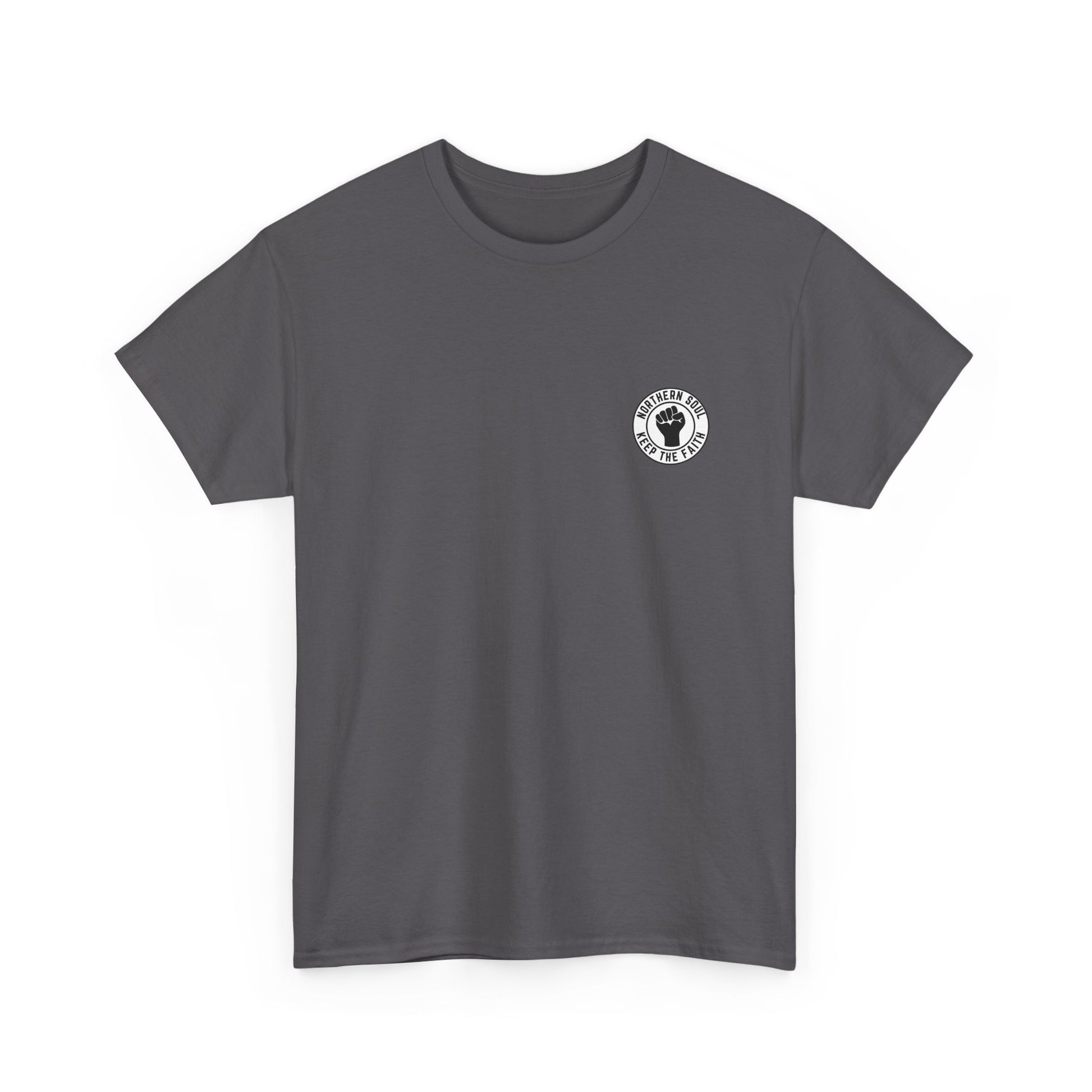 Celebrate the legendary Northern Soul movement with a T-shirt that’s as iconic as the music itself. Featuring the classic “Keep The Faith” clenched fist logo, this heavyweight cotton tee has the bold back print plus a smaller chest print for everyday wear.