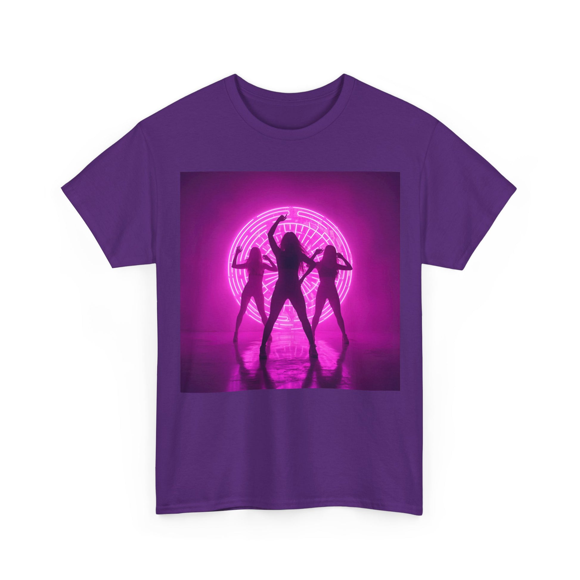 Bring the club energy wherever you go with the Neon Dance Silhouette T-shirt. Featuring striking pink neon backlighting and bold silhouettes, this design captures the essence of nightlife, music, and movement.