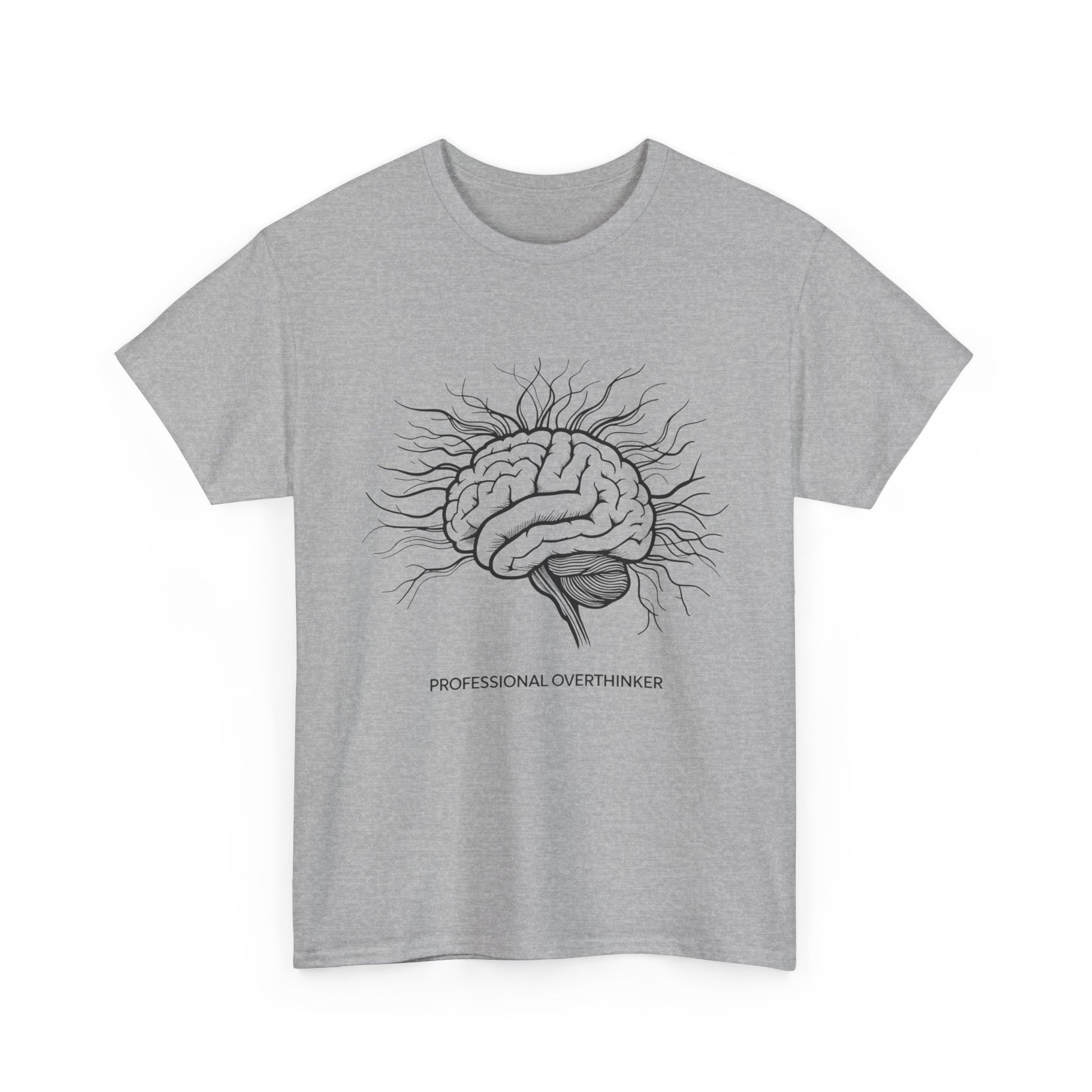 Professional Overthinker T-Shirt – Humorous Brain Graphic – Sports Grey