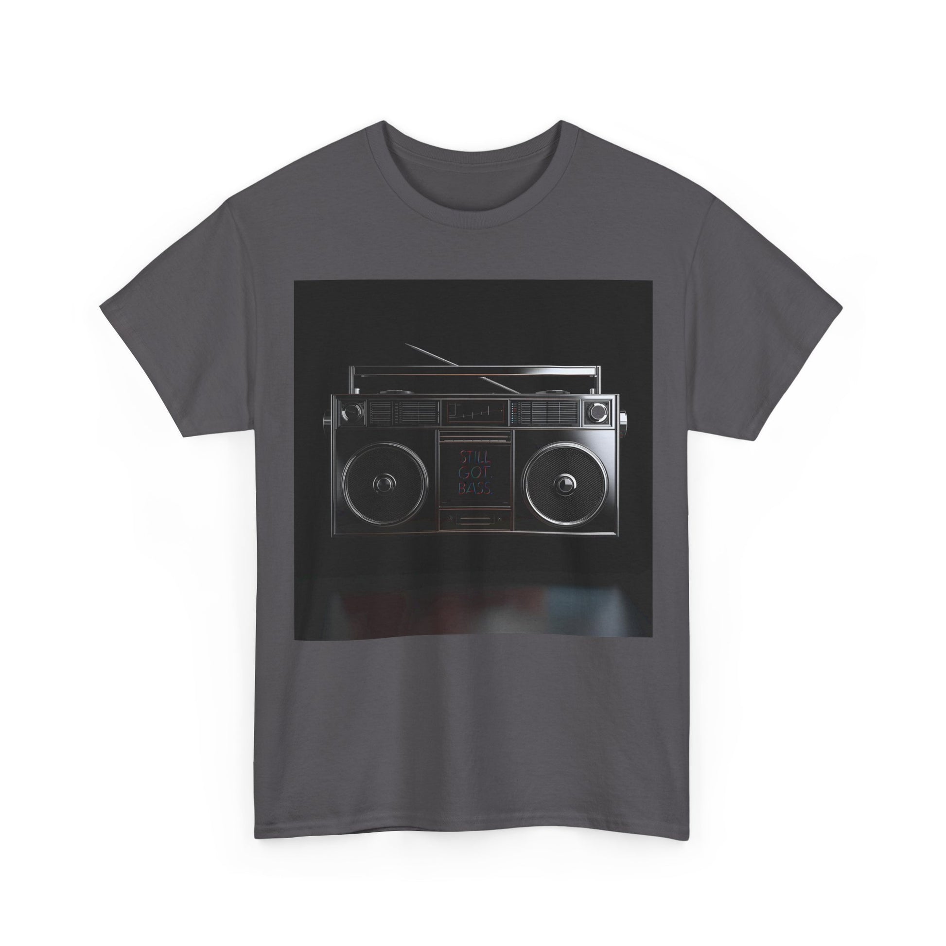 ✔ Retro boombox graphic – bold print with “Still Got Bass” detail