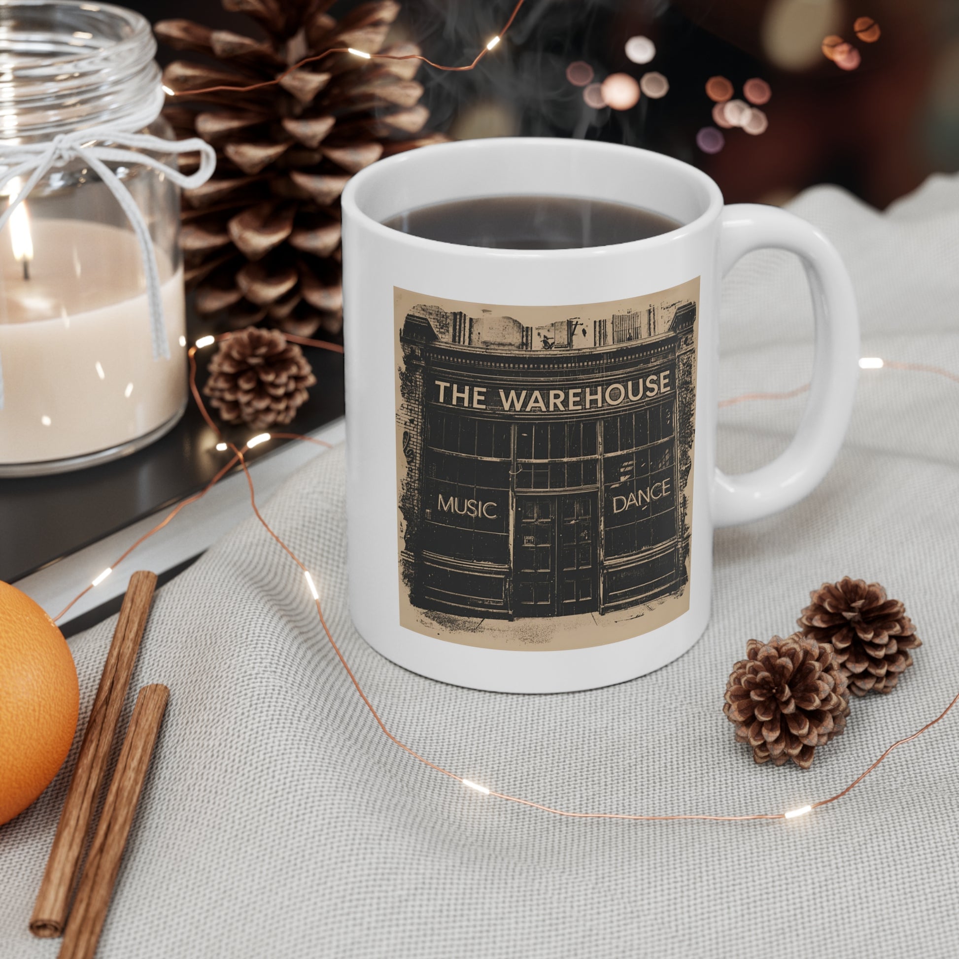 Vintage Warehouse Music Dance Mug, Cozy Coffee Cup, Gift for Music Lovers, Retro Mug for Celebrations, Holiday Drinkware